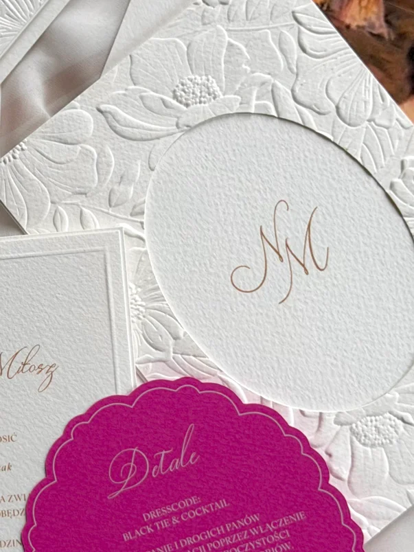 Każdy projekt indywidualny powstaje w oparciu o rozmowę i poznanie Waszych potrzeb – od klimatu uroczystości, przez kolory i faktury, po detale, które mają dla Was znaczenie. Dzięki temu powstaje papeteria, która nie tylko zachwyca wyglądem, ale też w pełni odzwierciedla Waszą historię i styl.